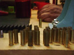 c) Proceder a la limpieza de las vainas para eliminar la suciedad acumulada en las paredes externas de las mismas y en el alojamiento de pólvora, sobre todo, aquellas que se han utilizado en práctica de tiro en movimiento o polígonos de suelo de tierra. Pero siempre se han de limpiar para evitar la acción abrasiva de esta suciedad, en nuestros “dies” (matrices). Básicamente existen dos métodos para limpiar vainas: Por acción mecánica (fricción) y por acción química.